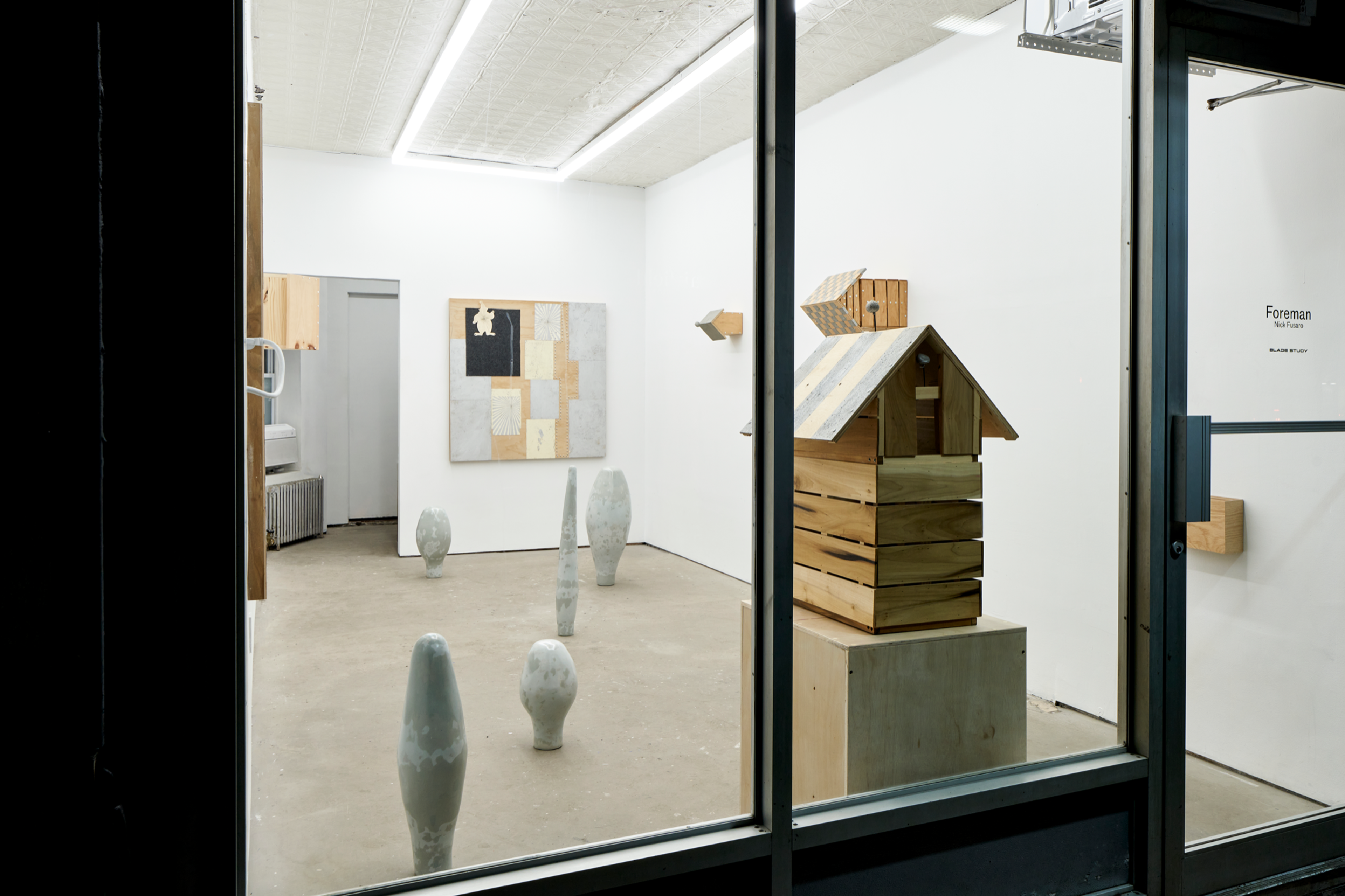 Blade Study is proud to present Foreman, Nick Fusaro's second solo exhibition with the gallery. Diligent and repeat visitors will notice a handful of references to his first show in 2024, Stretch Under Strain, where the conceptual artist explored the difficulty of ideation and historical baggage inherent to the creative process. In, Foreman, Fusaro has seemingly shed this anxiety while maintaining a sense of humor, this time proposing the process of making as a final product worthy of exhibition. Fusaro's wall panels, modeled houses, and floor sculptures make use of industrial and raw materials, which are presented in different states of finish. Here, he draws a comparison between the practices of artists, craftsmen, draftsmen, and of course, foremen, as comparable creators.