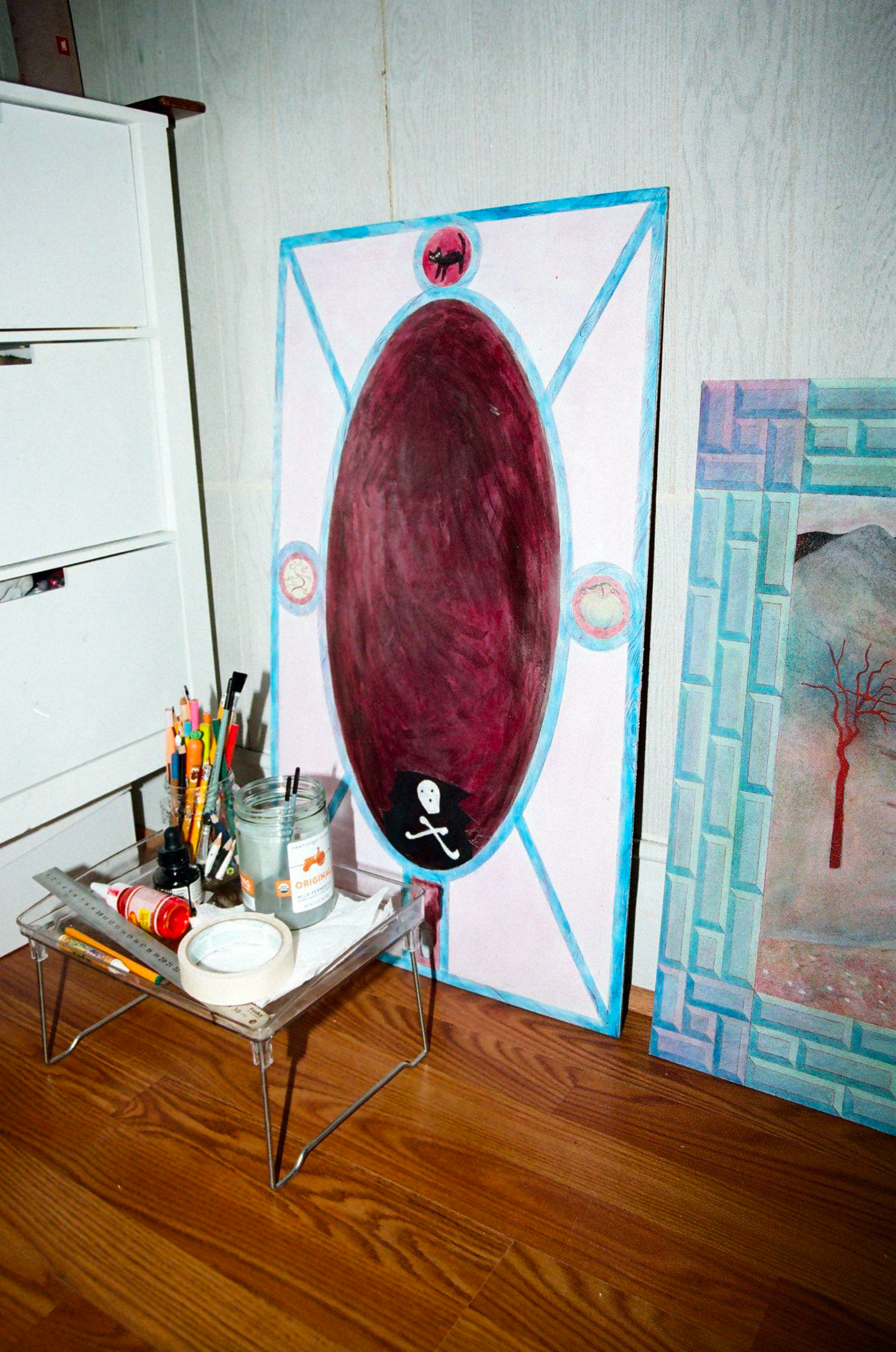 Gitte Maria Möller (b. 1991, Cape Town, South Africa) is a painter, multi-disciplinary artist and pre-school teacher. She graduated with a BAFA from the Michaelis School of Fine Art in 2015, where she received the Judy Steinberg Painting Prize for her graduate show. She has exhibited locally in South Africa, as a well as internationally across Europe, the UK and the United States. She lives and works between Cape Town and New York City. Gitte uses a range of different mediums and painterly devices to explore the symbolic and numinous possibilities of picture-making. Drawing from dream symbology, early video games and the natural and urban landscape, Gitte’s work holds a complex array of signs, symbols, and archetypes in suspension. Through her work Gitte strives to form a union between her inner and outer reality, creating a personalized arena for devotion in her pictures. In this intricate visual space, she offers a distracted meditation on a world interpolated by empathy and apathy, freedom and vulnerability, and the struggle between g00d and 3vil.