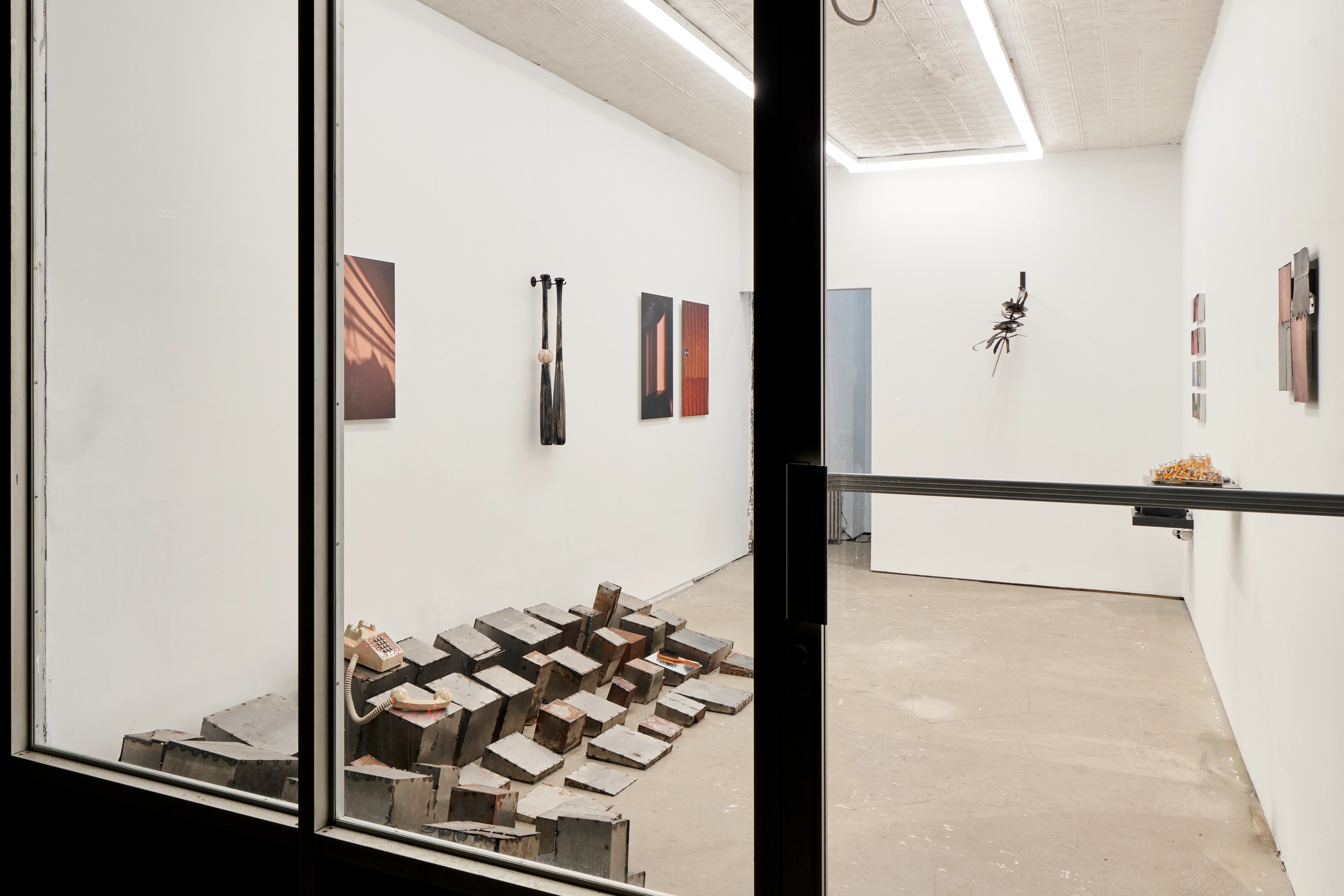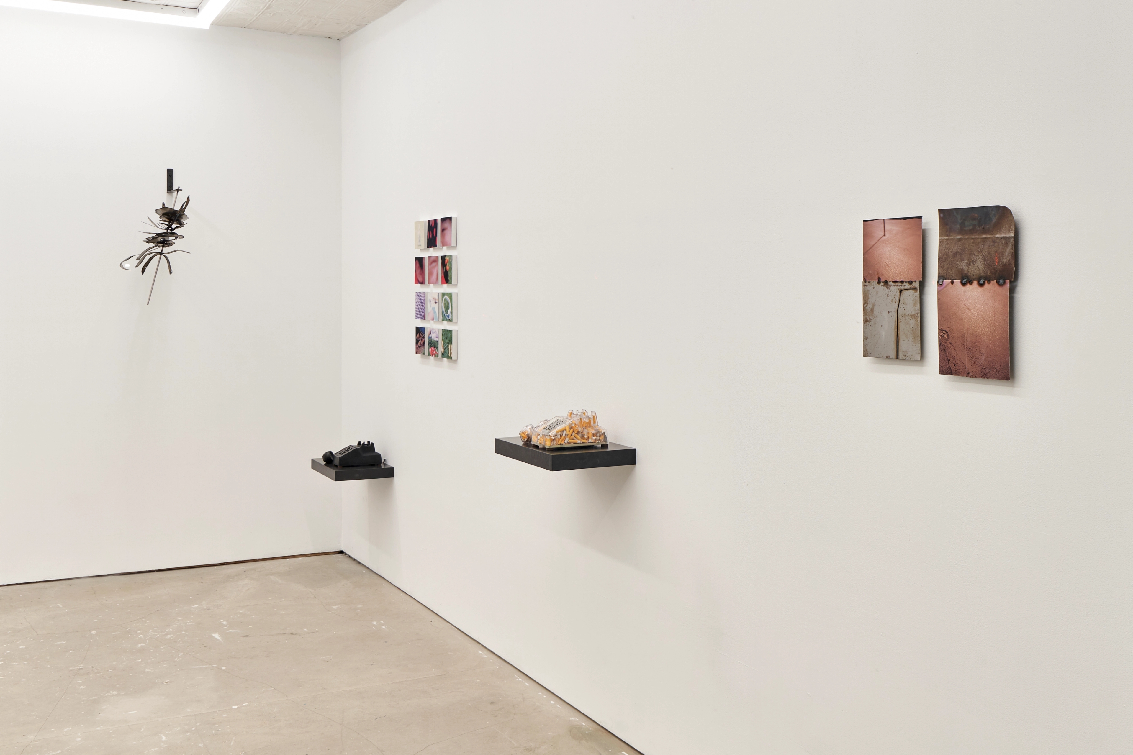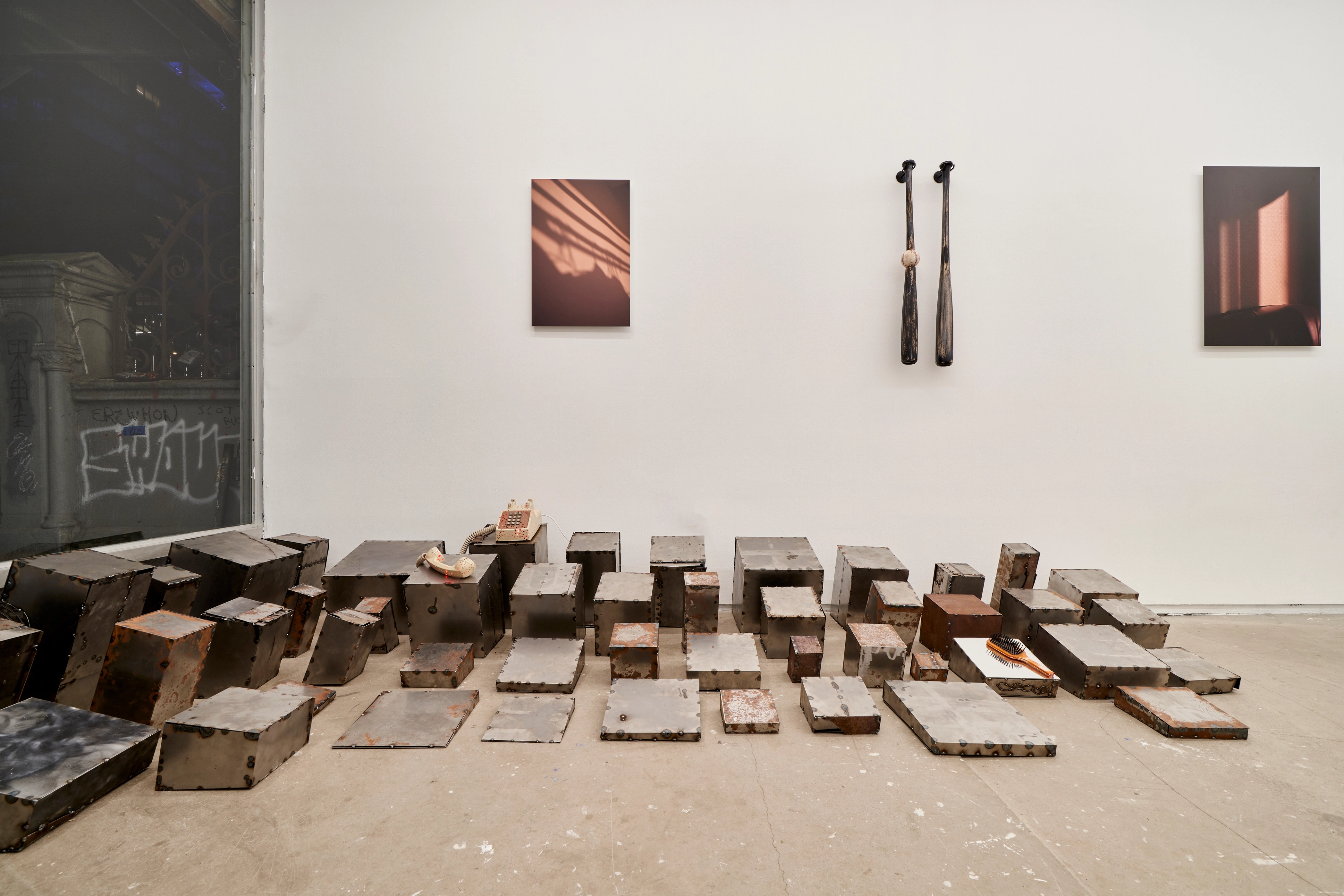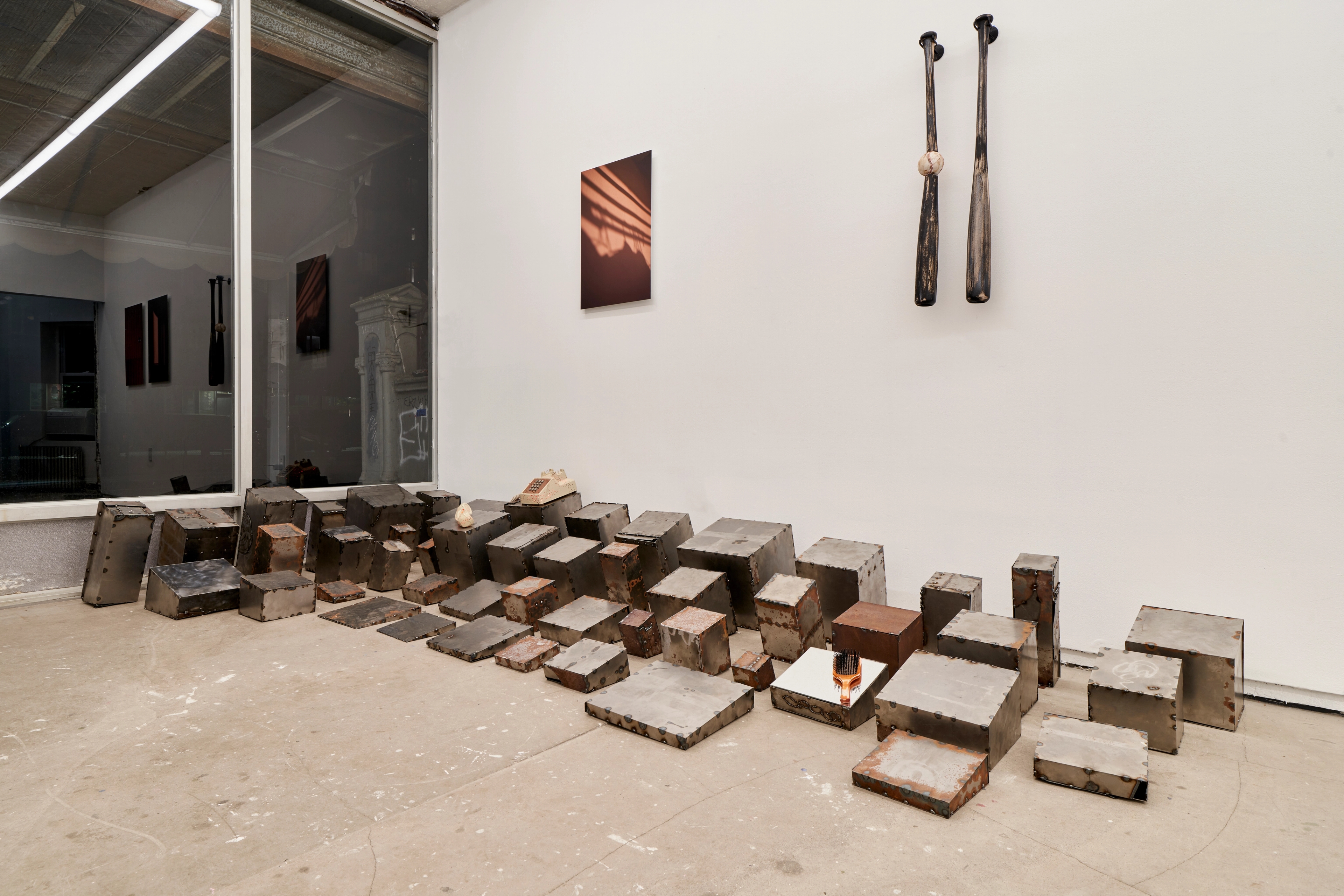 Tread Water is jiwoong's first solo exhibition with the gallery. Using photographic techniques, welded metal, and augmented ready-mades, the artist laces his uncle's lived experiences and observed behaviors with the items and architecture of the apartment where he, his uncle, his mother, and aunt lived in Seoul. The exhibition makes use of a photographic archive from the artist and his family. Two UV on durabond panels, Family, and Ripple, were taken by the artist on his last visit to Korea in 2021, which image splashes of light contouring the walls of their home. In the entirety of his family's photos, there is only one image of jiwoong's uncle: a picnic scene, which the artist has distorted and segmented into a grid of twelve panels in the wall work Squint. Though a pleasant moment, the scene was striking to jiwoong, how the splay of food, scattered shoes, reaching hands, and squinting eyes mimicked his uncle's accident. His composition is selective, illustrating how a traumatic change ripples through every part of a survivor's life, even the past. Water Vessels, varied metal boxes laid on the floor, reference the limp Joo walked with after his accident. One mirrored acrylic panel has a hair brush laid on it, acting as a displacement, a good memory hidden in plain sight.