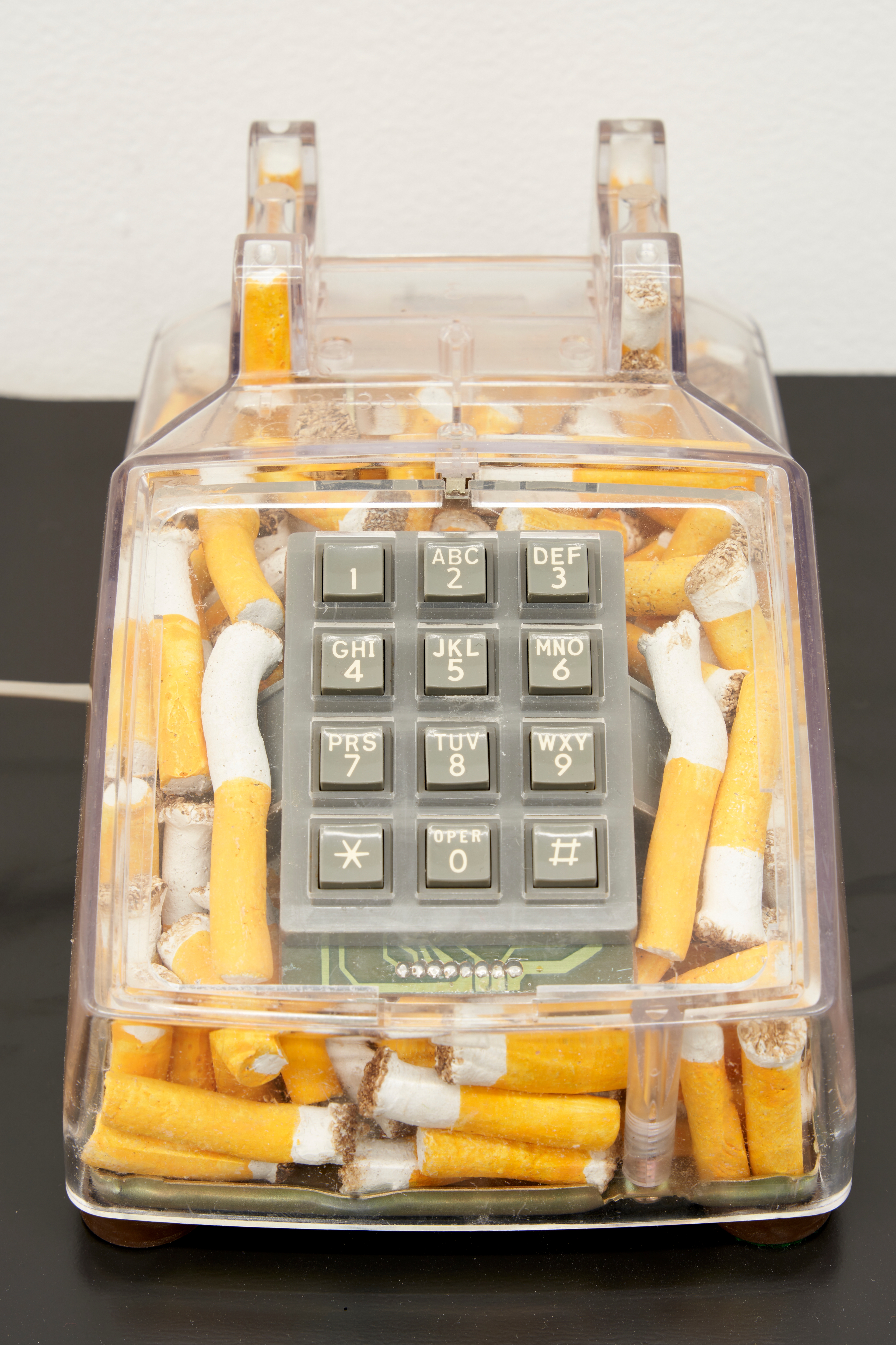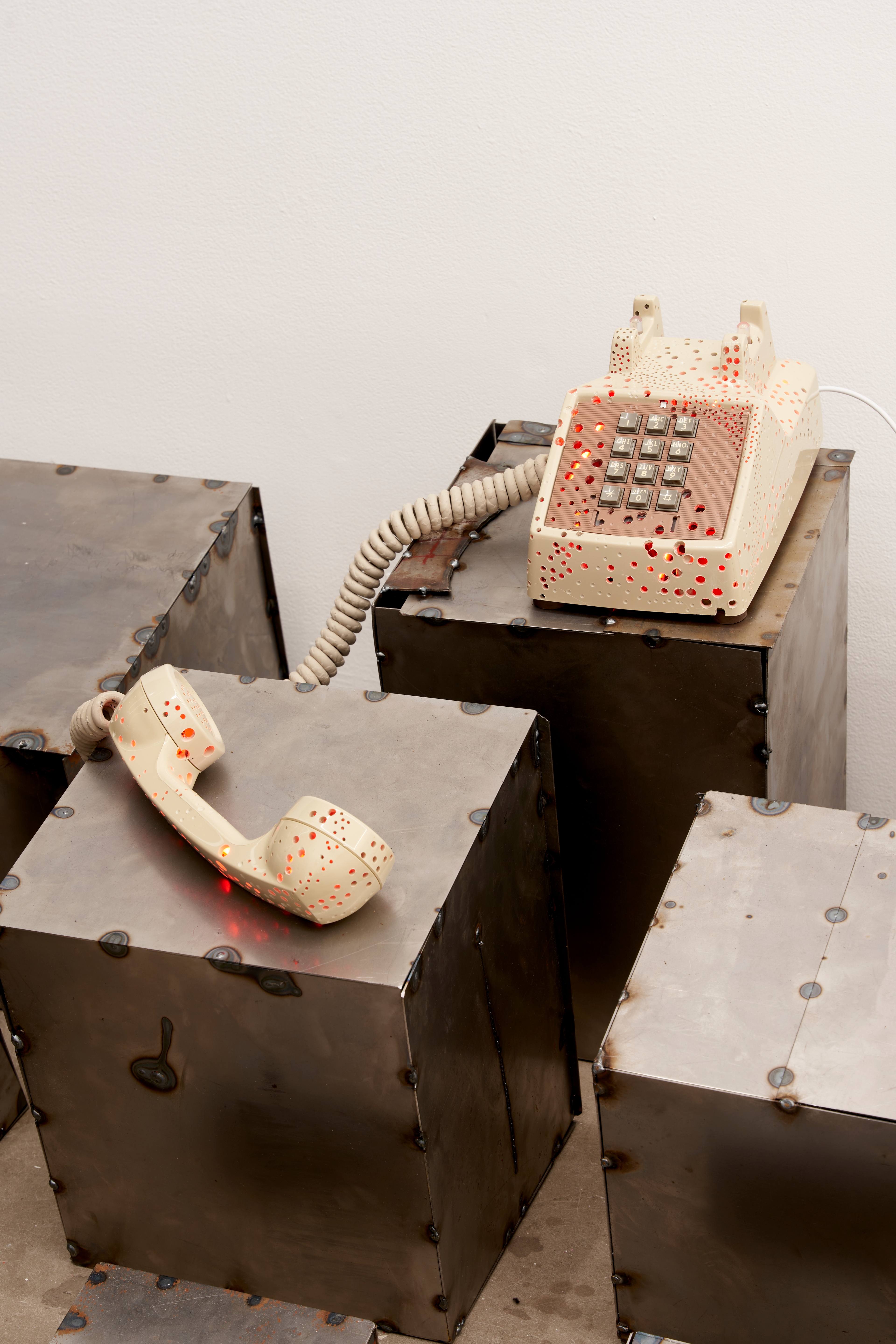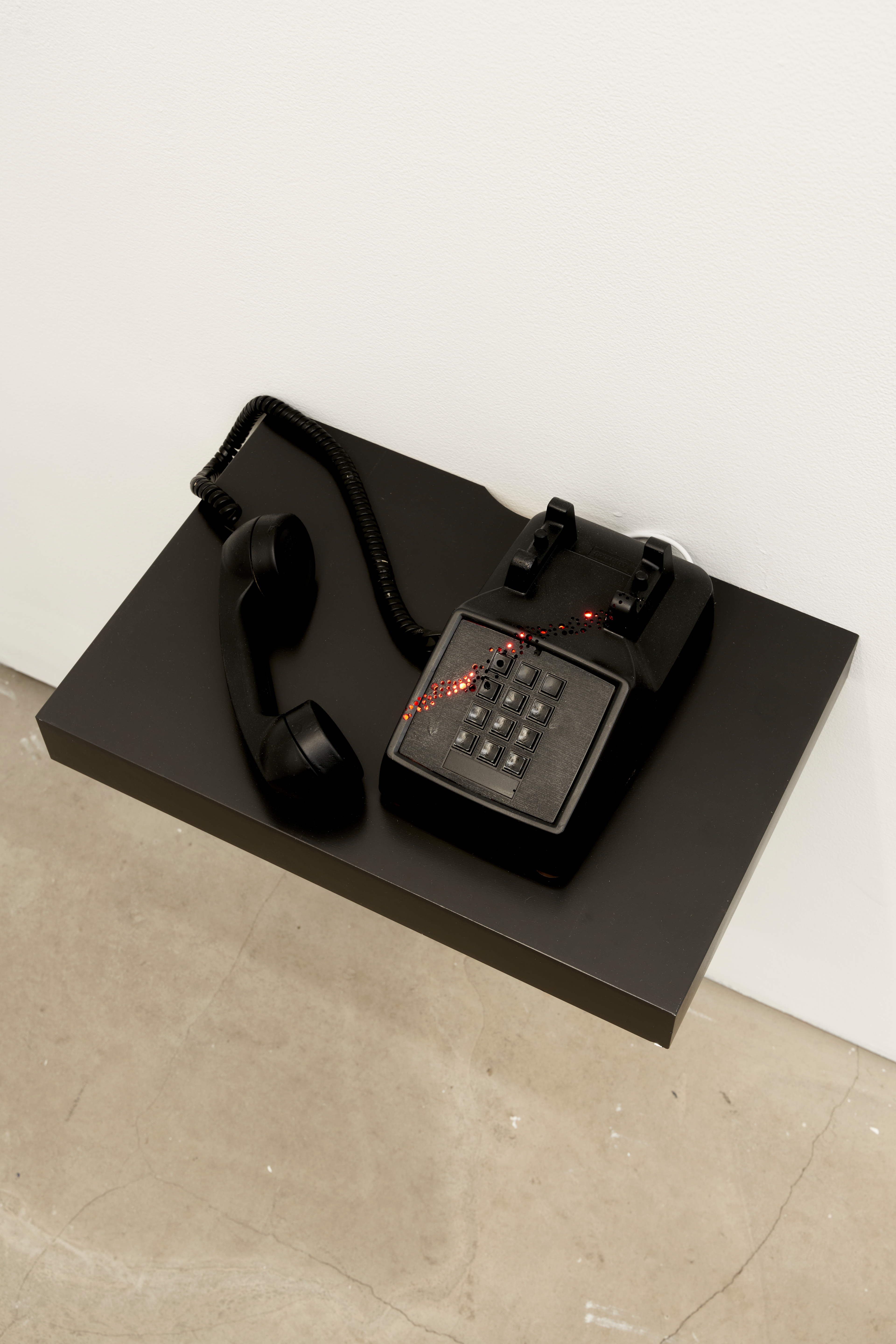 8" x 4.5" x 9"Found telephone, LED strip light, spray paint