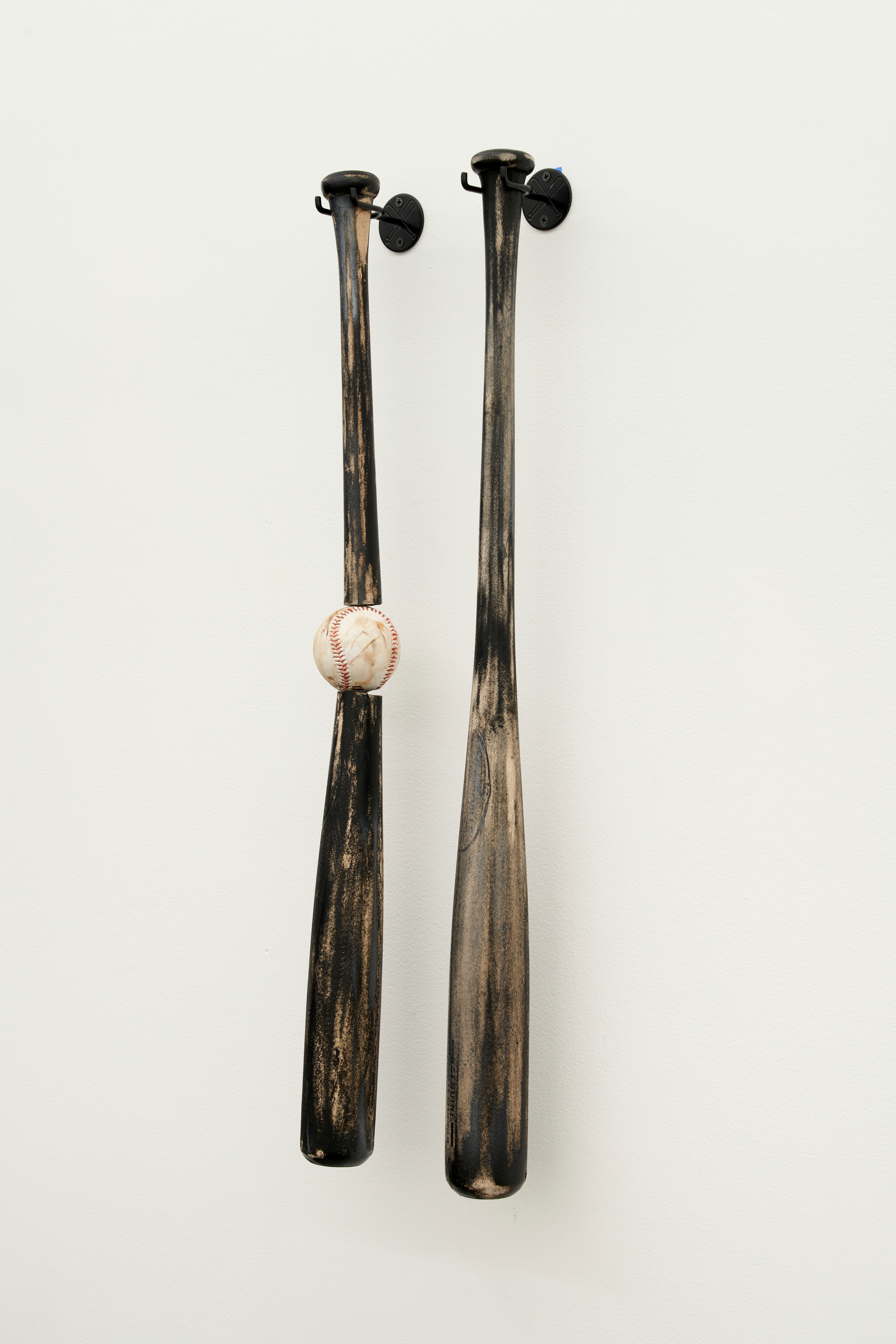 5" x 33" x 3"Baseball bats, baseball, wall mount display stands, spray paint, rust water
