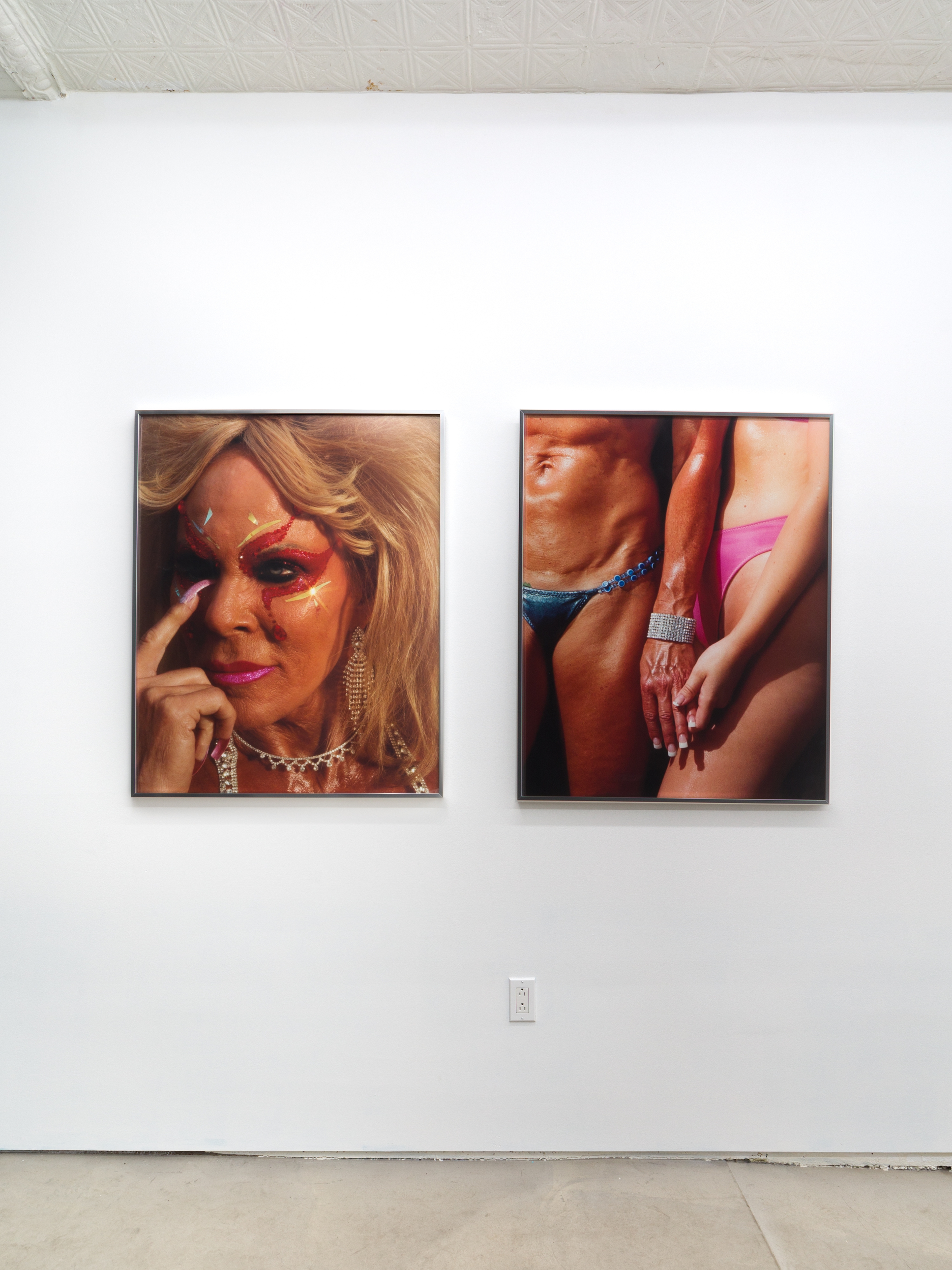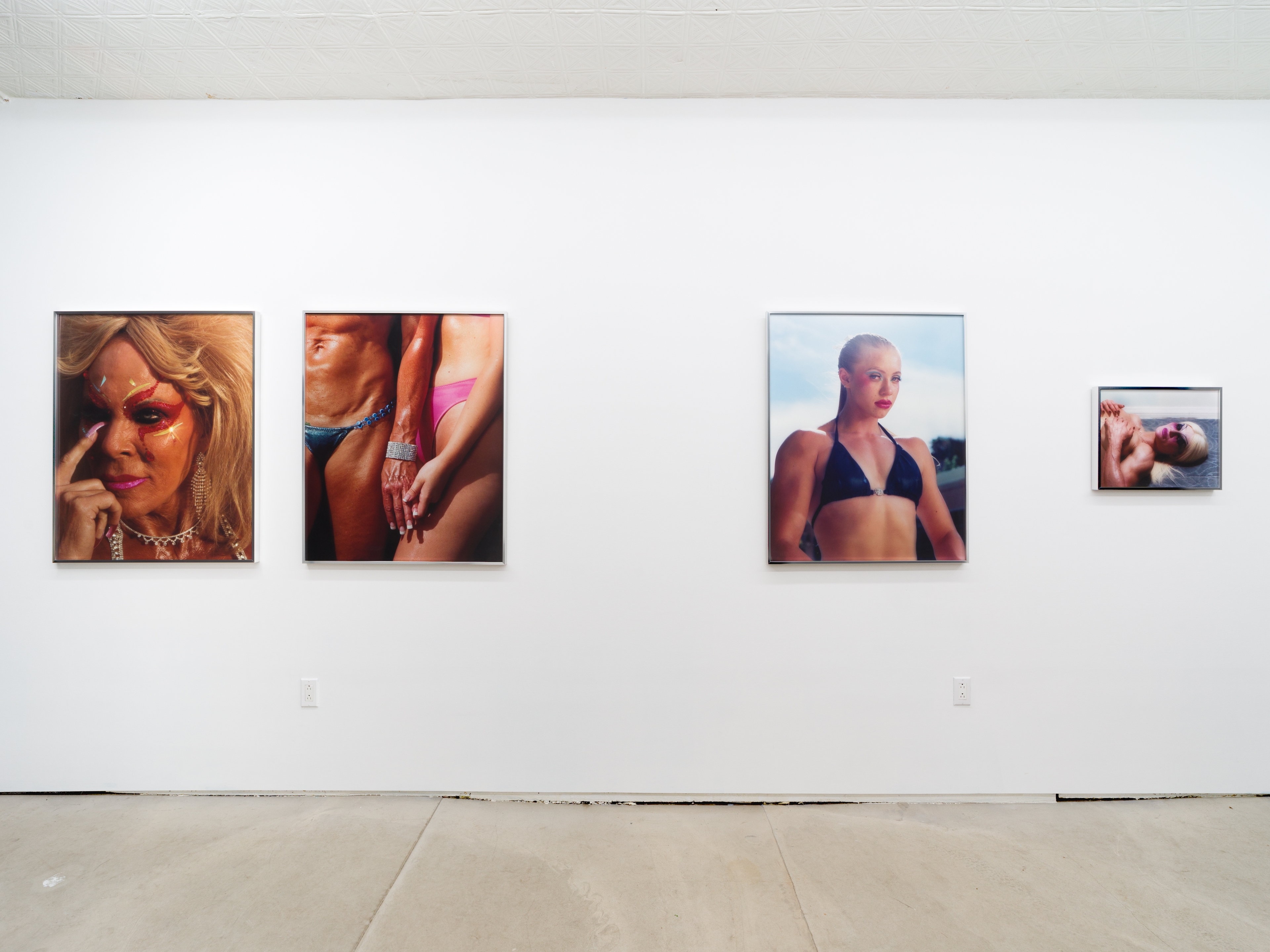 Bodybuilding extends the fine lines of the typical feminine body. When performed by women, it is a pageantry and strength-driven sport that challenges gender roles, beauty, and health. As a sport, body building is expensive both physically and fiscally. The athletes who choose this art form often do so at great personal expense. Biel’s work focuses on the pleasure bodybuilders experience in crafting their physiques. She wraps her subjects in a gauze of steam, glitter, and baby oil, resulting in alluring, nostalgic images of buff women flexing, gardening, and relishing in their muscular forms. Biel’s photographs capture this micro-revolutionary act in a gummy haze akin to a centerfold.