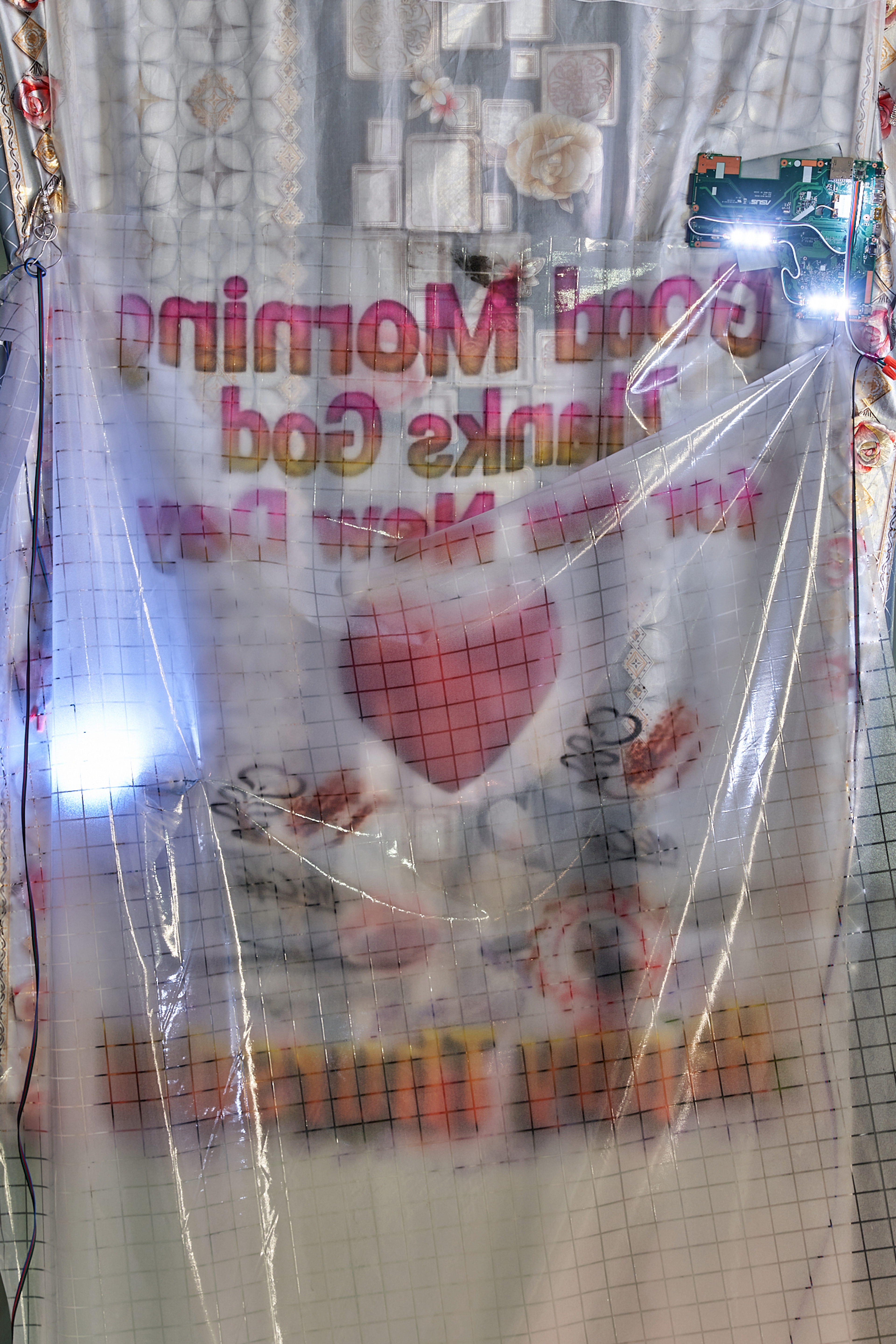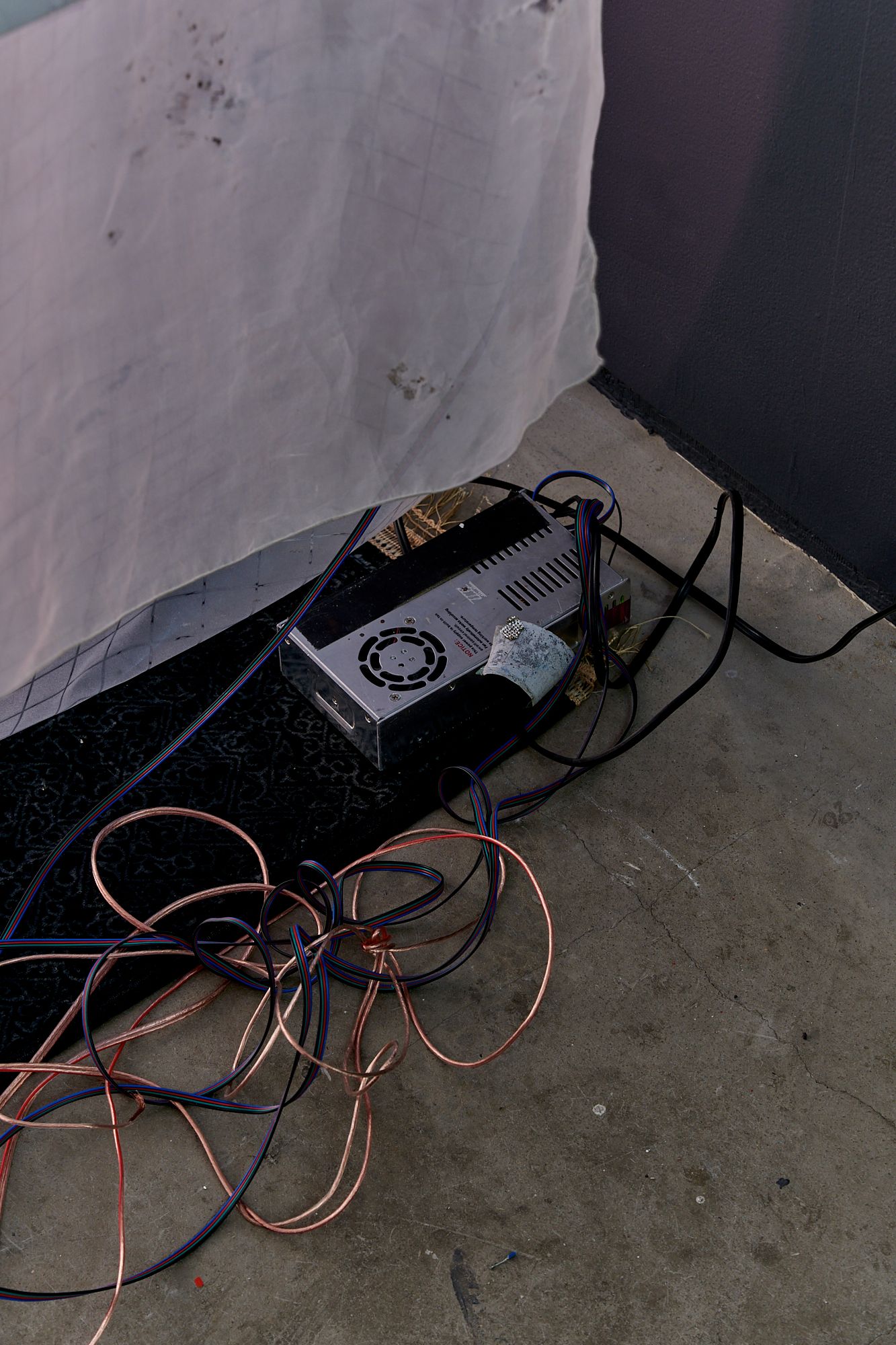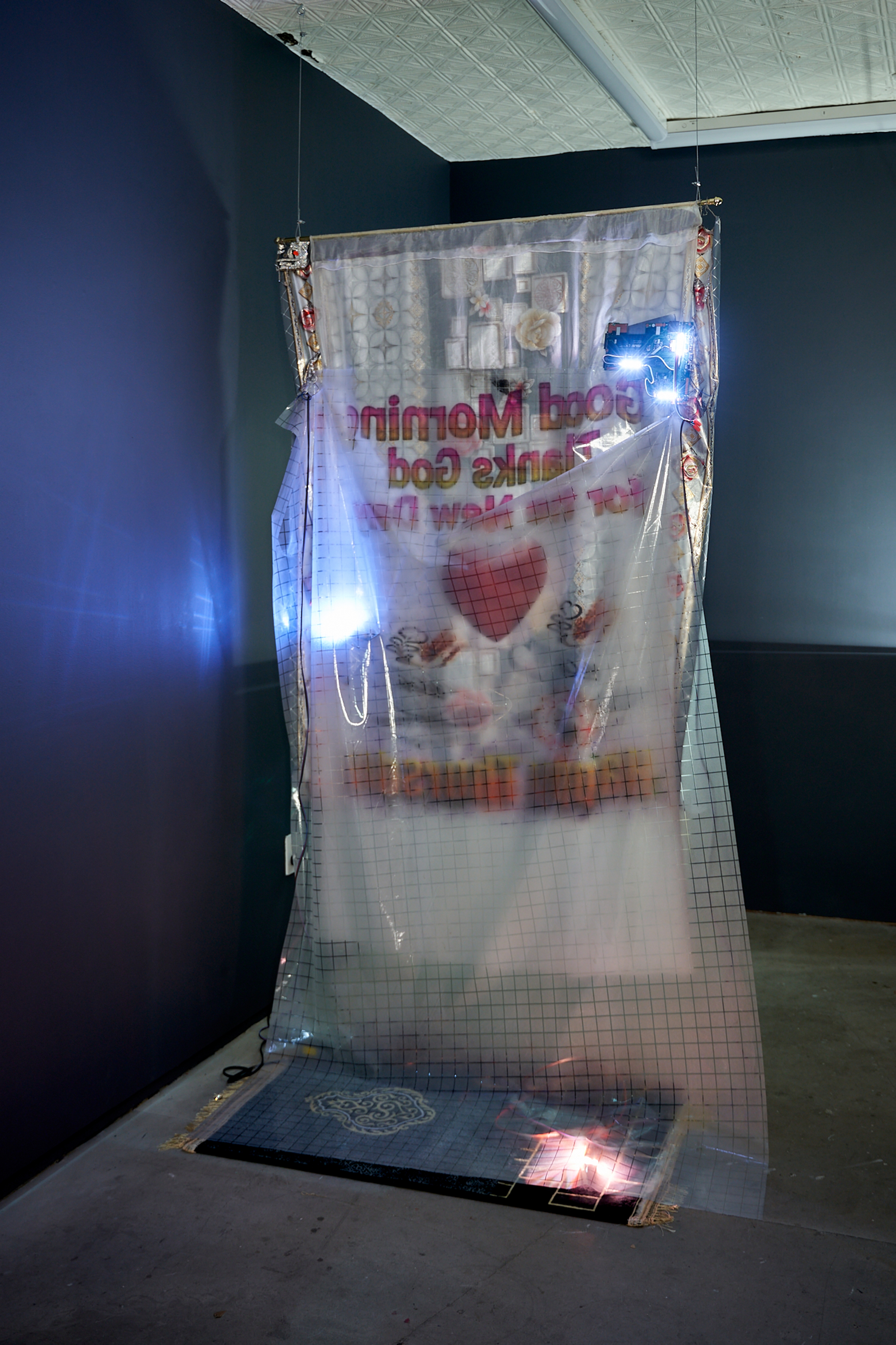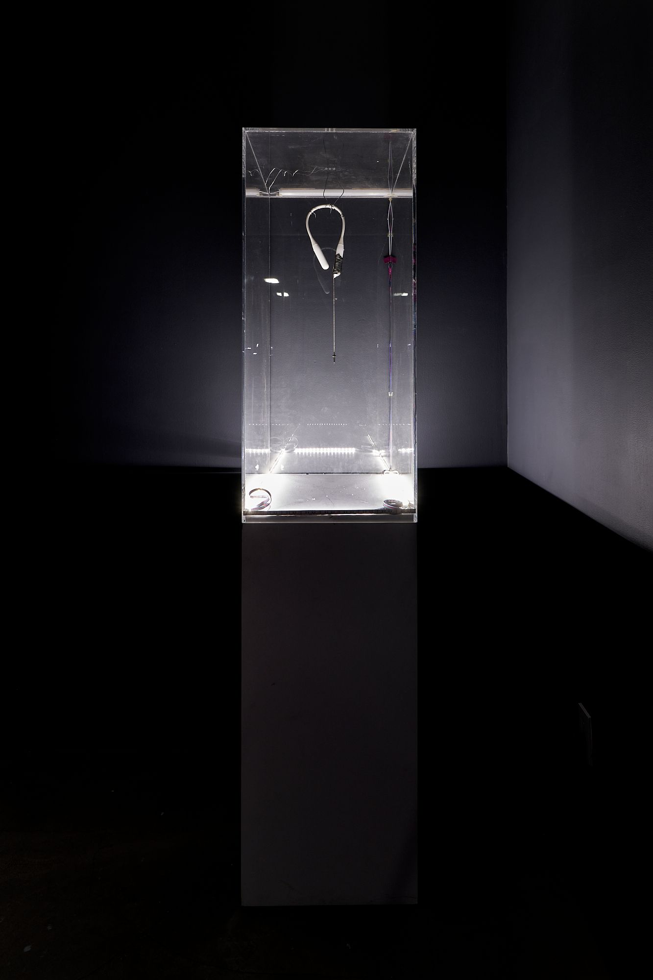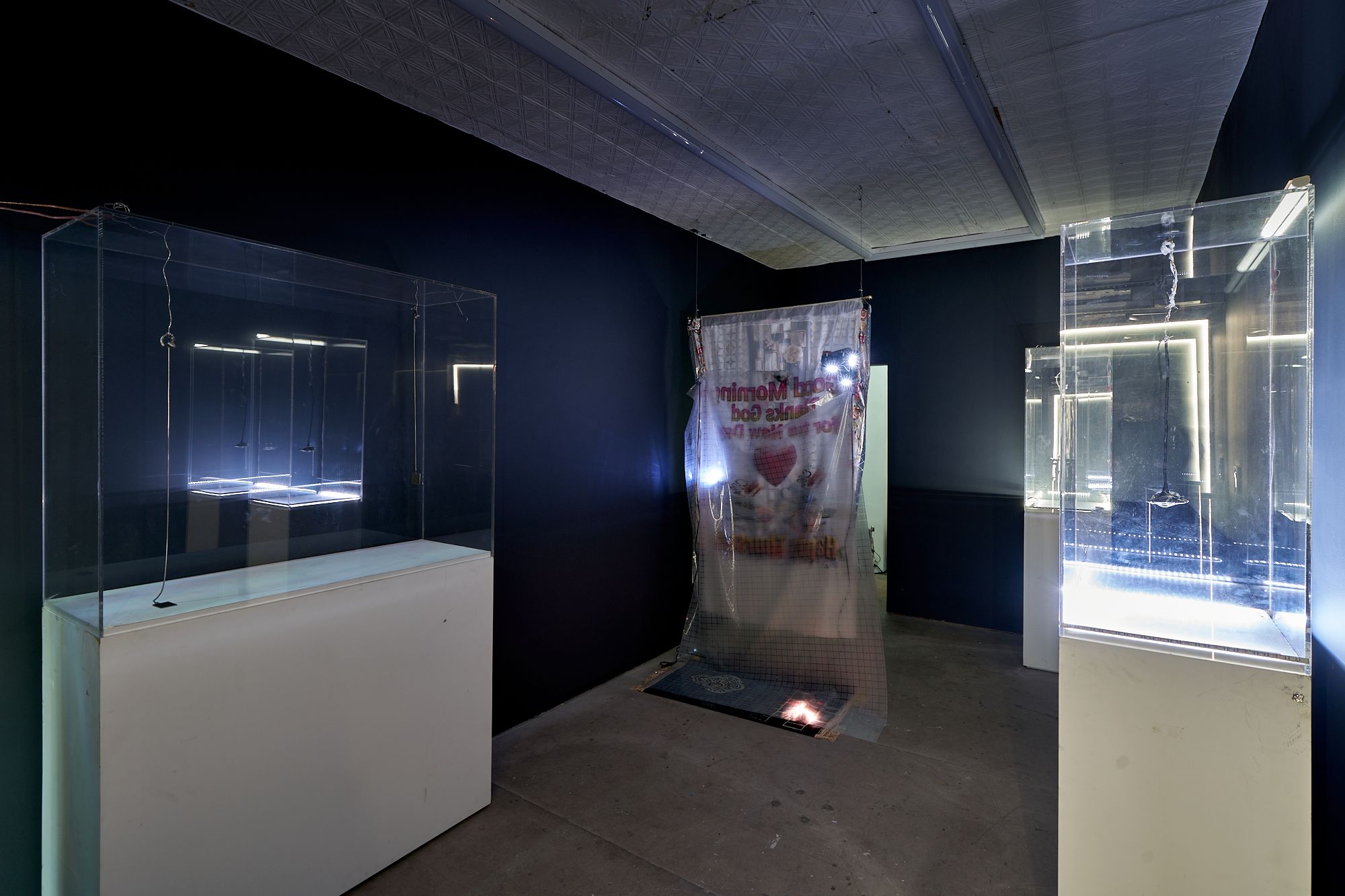 YATTA presents FATHAGOD.EXE. The installation proposes the unique treatment, use, and reliance on wearable technology by aunties and uncles along Fulton street. The artist observes this use of technology as evidence of continuous, spiritual, connectivity to the diaspora, honoring Blue Tooth wearables for their potential sacred use while acknowledging that this connection is wrought by extraction. This technology relies on raw materials pulled from the earth, often mined by the relatives of the very people who use it to stay in touch. YATTA observes and incorporates this distinctly colonial tension: extraction of Black material, both physical and cultural, appears to maintain and fuel the world as it exists now. By adorning ready made examples of tech wearables, crystallizing them as artifacts, YATTA heightens the spiritual role they play in daily life. Calling on an infinite past, FATHAGOD.EXE offers no solution, but information. Again, Connection.