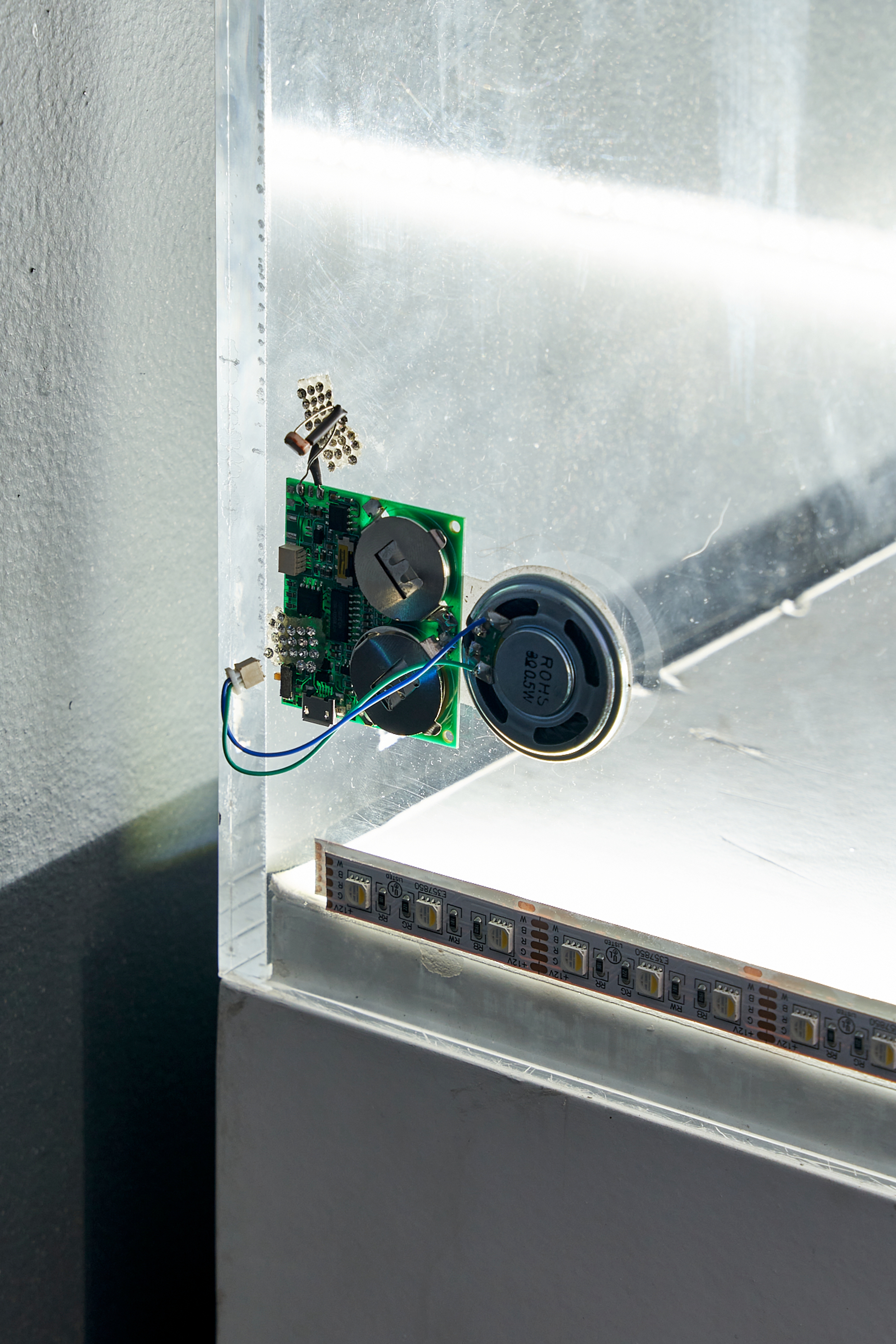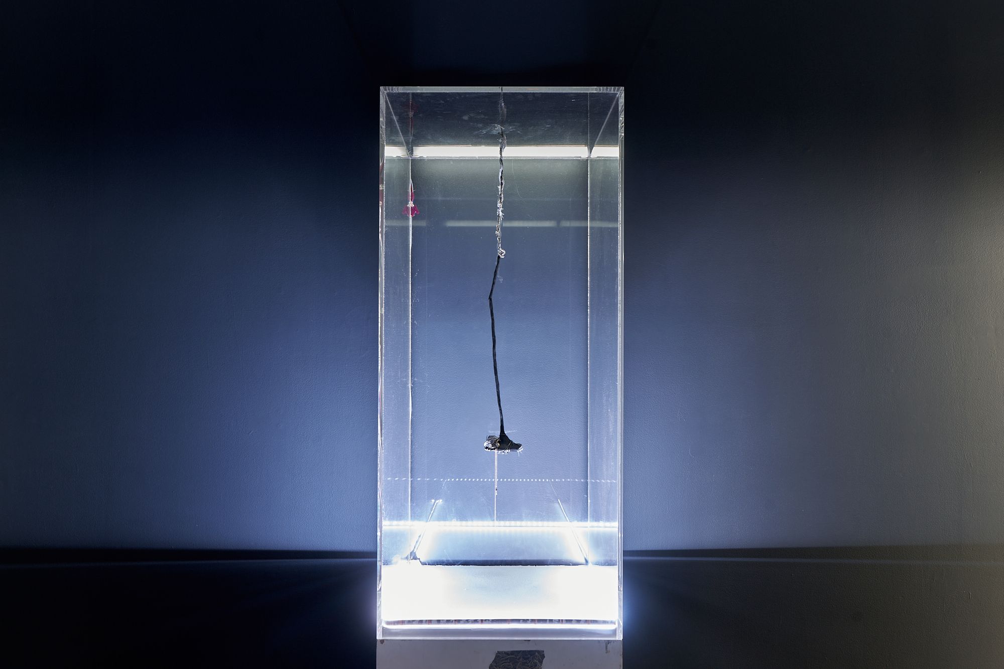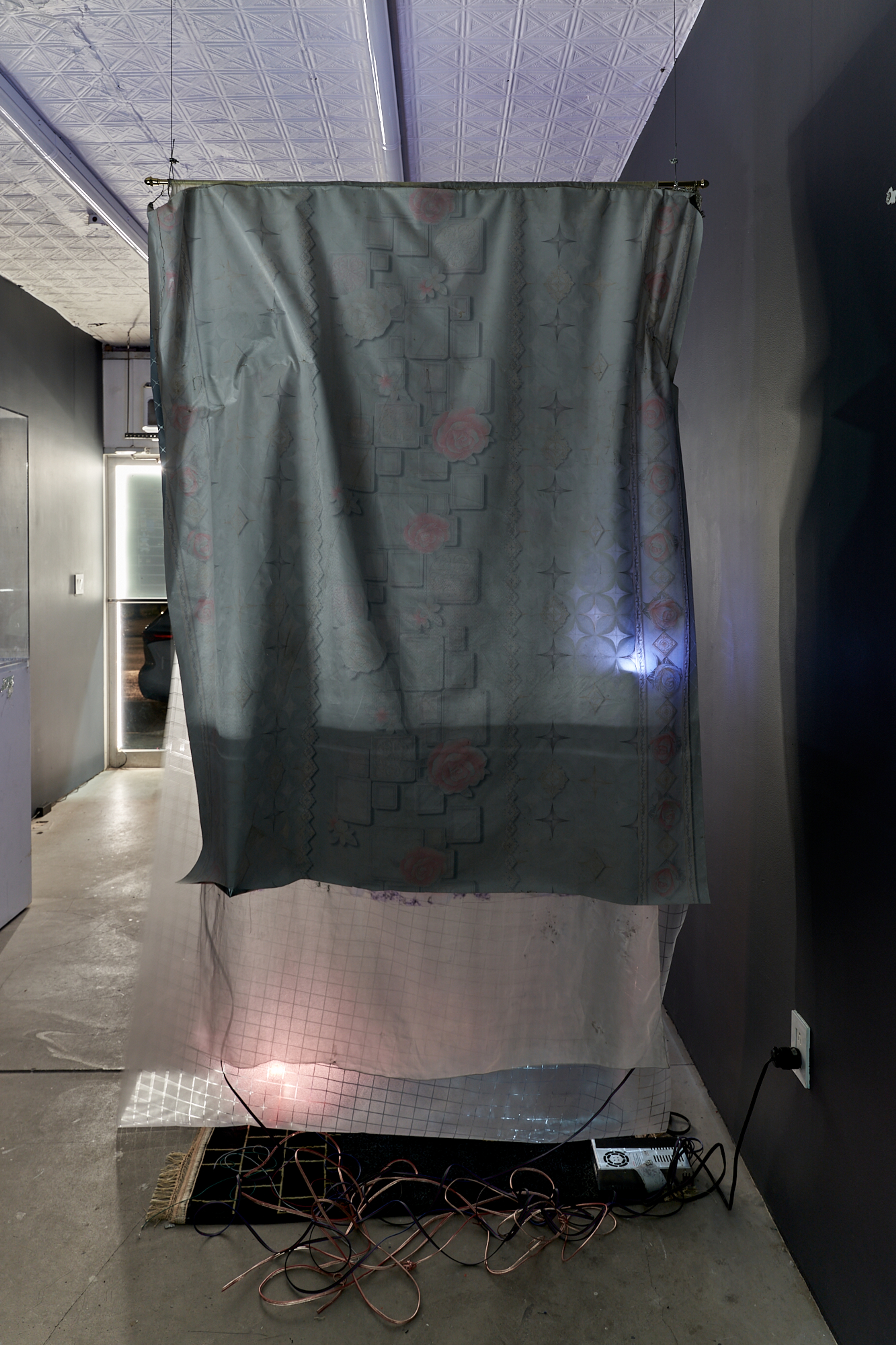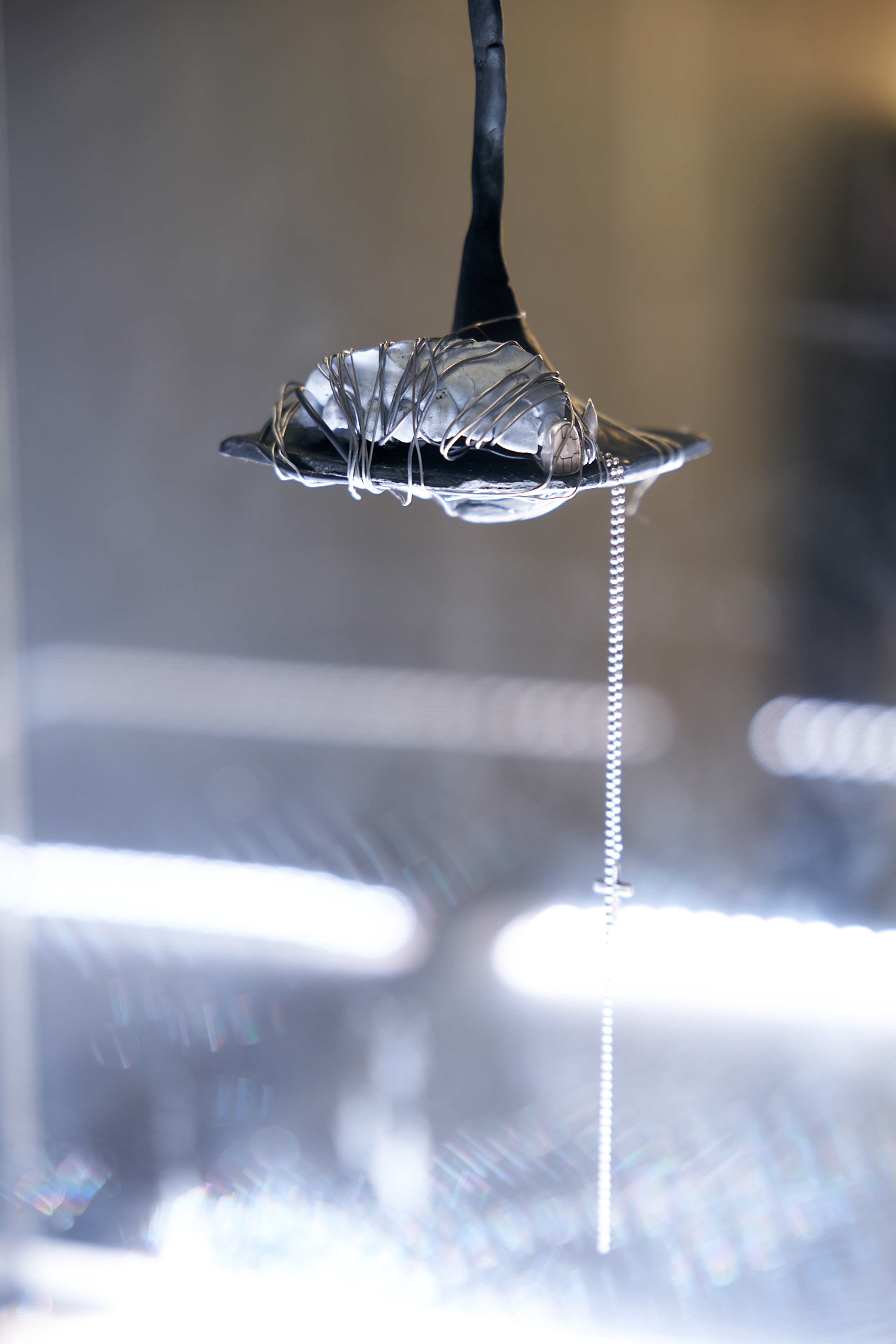 YATTA presents FATHAGOD.EXE. The installation proposes the unique treatment, use, and reliance on wearable technology by aunties and uncles along Fulton street. The artist observes this use of technology as evidence of continuous, spiritual, connectivity to the diaspora, honoring Blue Tooth wearables for their potential sacred use while acknowledging that this connection is wrought by extraction. This technology relies on raw materials pulled from the earth, often mined by the relatives of the very people who use it to stay in touch. YATTA observes and incorporates this distinctly colonial tension: extraction of Black material, both physical and cultural, appears to maintain and fuel the world as it exists now. By adorning ready made examples of tech wearables, crystallizing them as artifacts, YATTA heightens the spiritual role they play in daily life. Calling on an infinite past, FATHAGOD.EXE offers no solution, but information. Again, Connection.