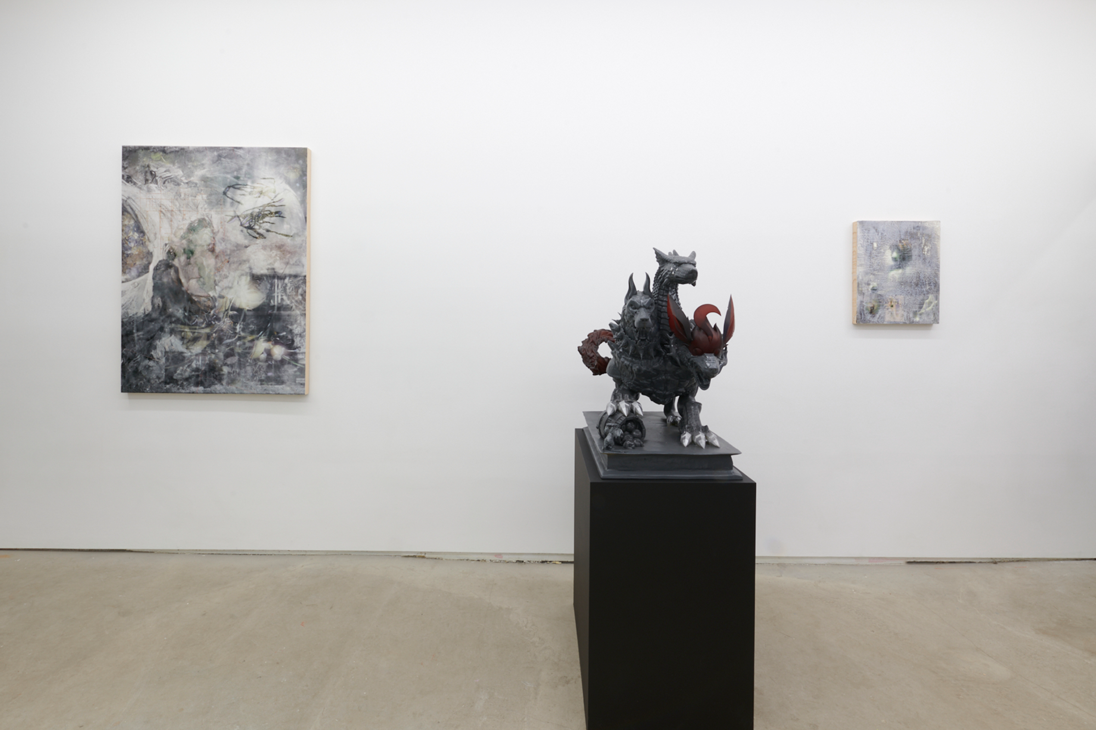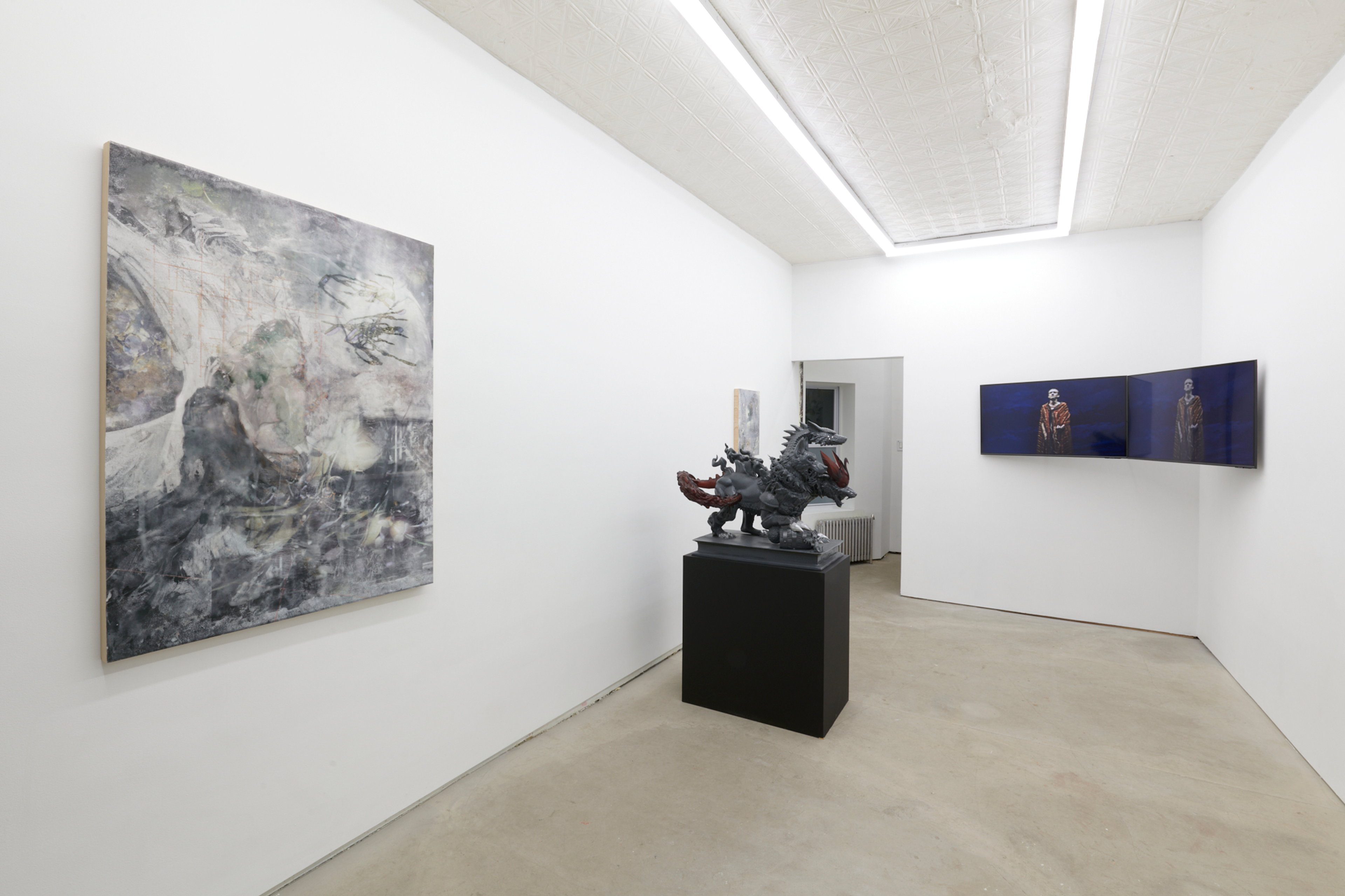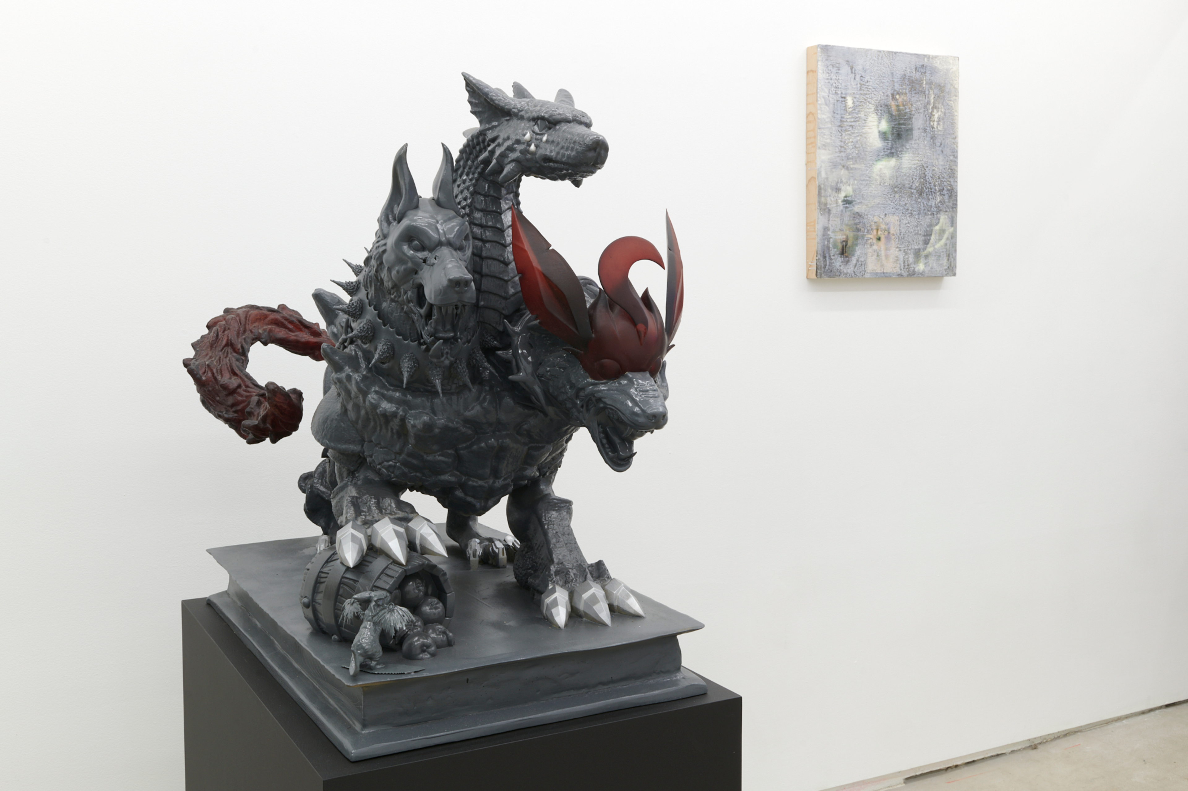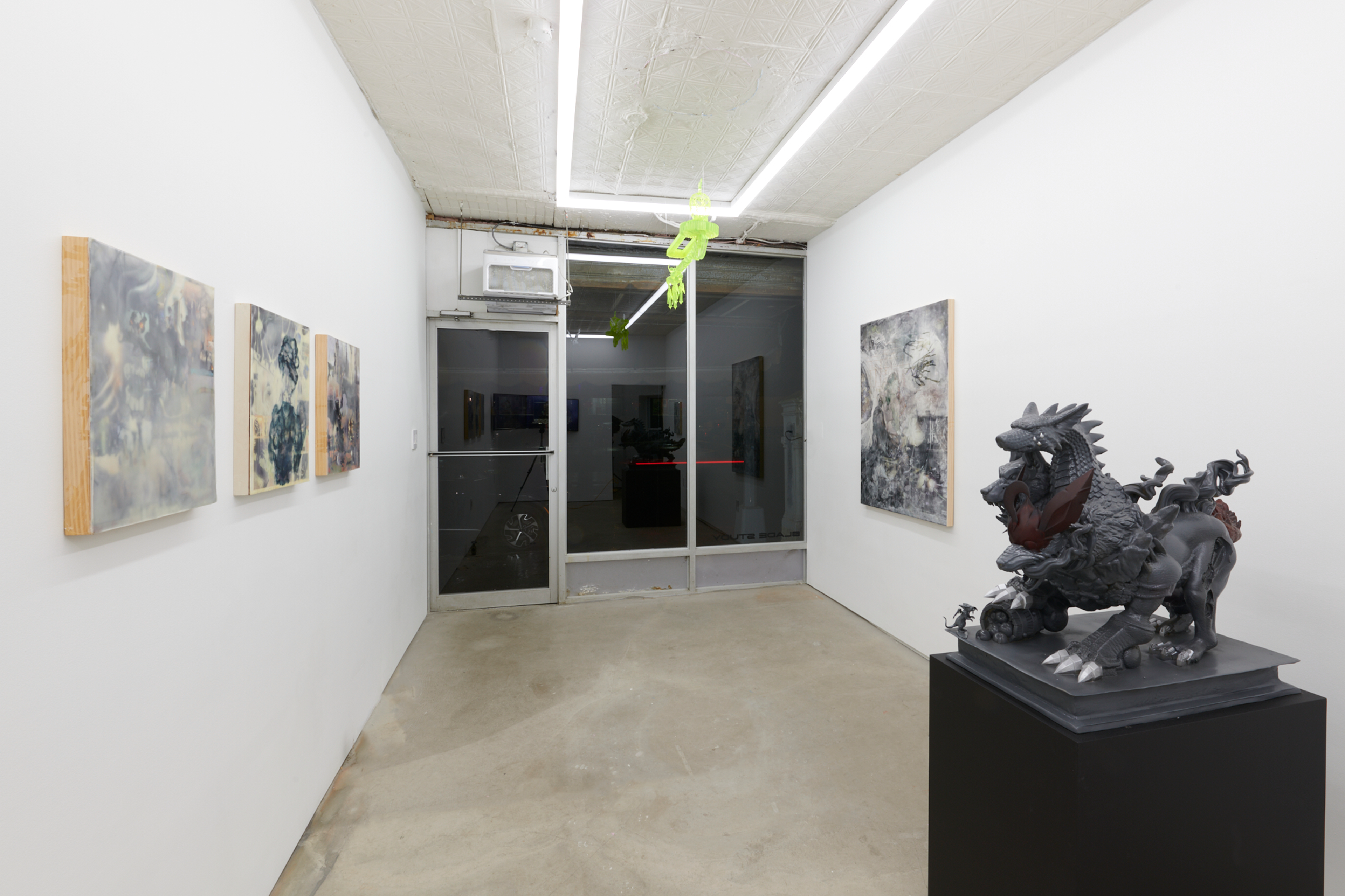 Regarding etymology, the notion of looking (rather than seeing or observing) is unique to English. To behold is to maintain a type of looking related to awe, to cherish with one’s eyes what one is seeing. To behold is grandiose, old-fashioned, an act of shock, egotistical on another’s behalf. Behold! Four artists, Stewart Bird, collaborators Chris Comfort and Dana Greenleaf, and Genevieve Goffman, showing with the gallery for the first time. Each has created works of fantasy that negotiate the relative necessity of the ego through its disintegration, creation, and absolution in the surreality of modern times. In painting, sculpture, and video, included works utilize machinic processes to describe humanistic experiences.