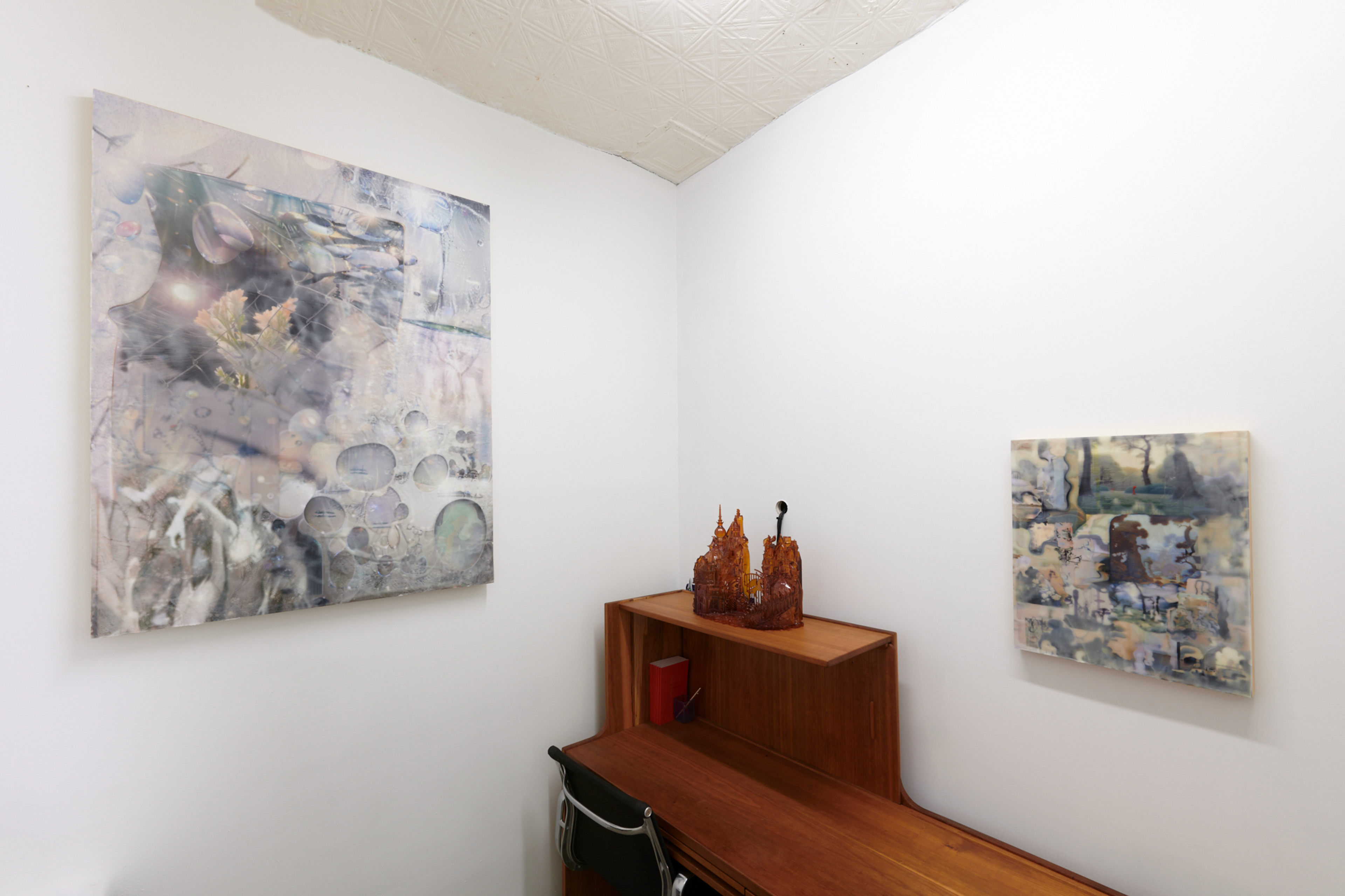 Genevieve Goffman is a sculptor who expresses storytelling through composite architectural forms produced from real and imagined histories. The castle compound, Miss Astor Throws A Tantrum, 2021, describes a boiling point between the old-moneyed Astor matriarch who wanted nothing to do with the nouveau riche Vanderbilt family in 1840s New York. Goffman has imaged this petty drama between new and old money to illustrate the role of exclusion and feeling of invasion that appear when foreign entities challenge normative culture. Goffman’s other featured works, The Key and The Dog, reference significant items and events from a short story written by the artist. Separated from their original context, these three sculptures act as misleading clues. With their contexts scrambled the histories and stories the artworks reference become obscured.