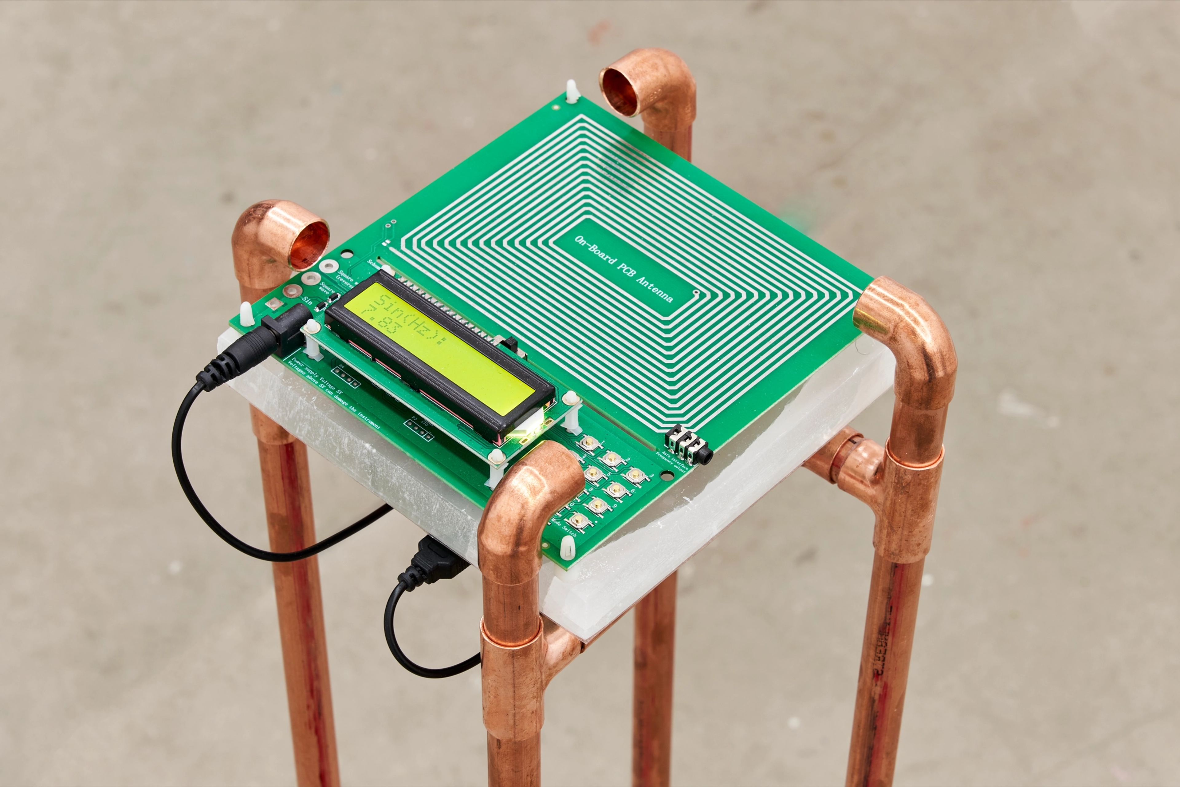 Koury has transformed the gallery into a resonant cavity tuned to the Schumann Resonance, a natural electromagnetic frequency produced by lightning strikes and sustained between Earth’s surface and upper atmosphere. Averaging around 7.83 Hertz and colloquially known as the earth’s “heartbeat,” the phenomenon is well-established within atmospheric and geological scientific literature and its impact on human physiology remains an active site of interdisciplinary research and speculation.